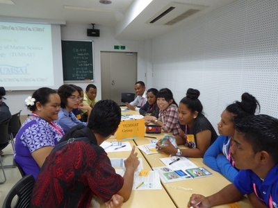 佐藤海洋科学部長による本学の紹介の後、6つのグループに分かれ、フリートーキングによる意見交換を行いました。