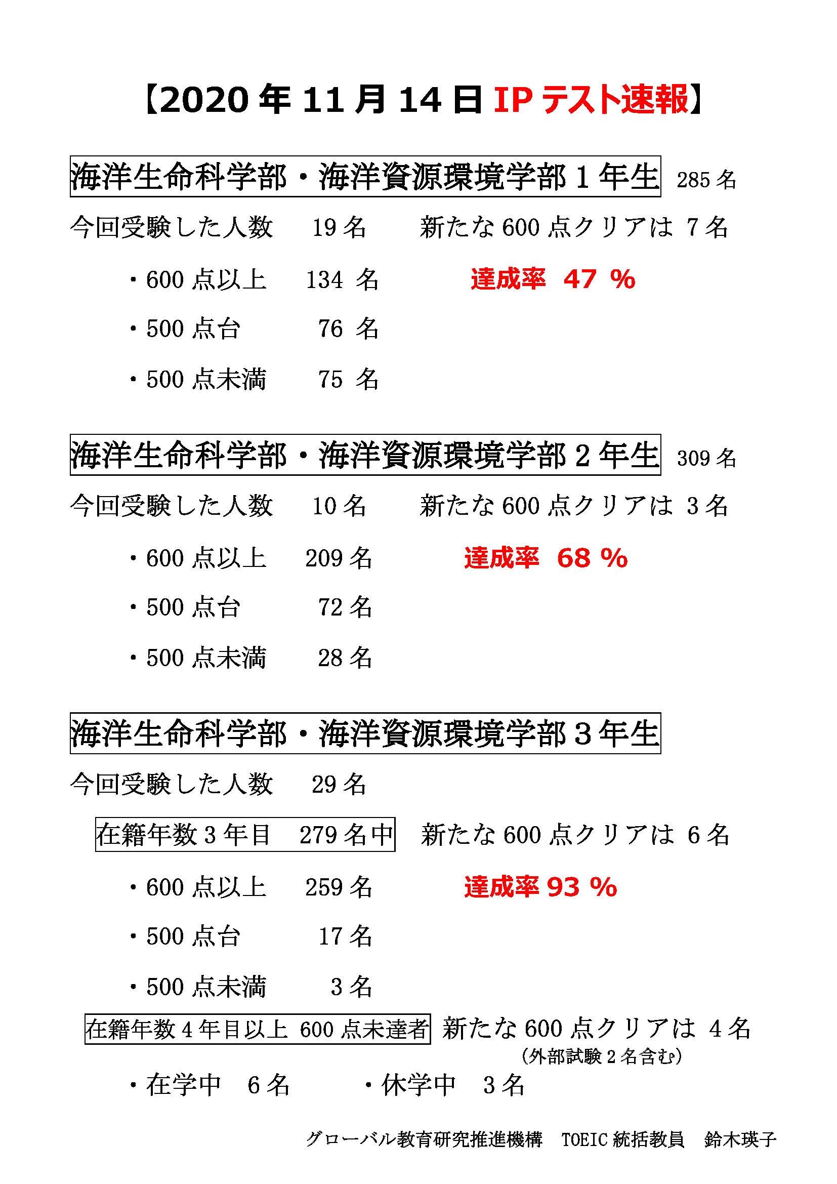 TOEIC IPテスト速報 11月14日TOEIC IPテスト HOME > TOEIC学習 > TOEIC IPテスト速報 > 11月14日TOEIC IPテスト TOEIC学習 海洋生命科学部・海洋資源環境学部のTOEIC教育 TOEIC600点4年次進級要件TOEIC学習に対する支援体制TOEIC教育ロードマップ TOEIC Newsletter TOEIC IPテスト速報 TOEIC IP(学内)テスト情報 TOEIC開講講座 2025年度 2024年度 2023年度 2022年度 2021年度 2020年度 2019年度 2018年度 2017年度 2016年度 2015年度 2014年度 2013年度 TOEICクラス担当講師陣 後輩へ伝えたい!進級要件苦労話 TOEICスコアアップのコツ 英語クラスあれこれ 英語学習カウンセリング スコアアップ経験者インタビュー 英語資格試験関連リンク集